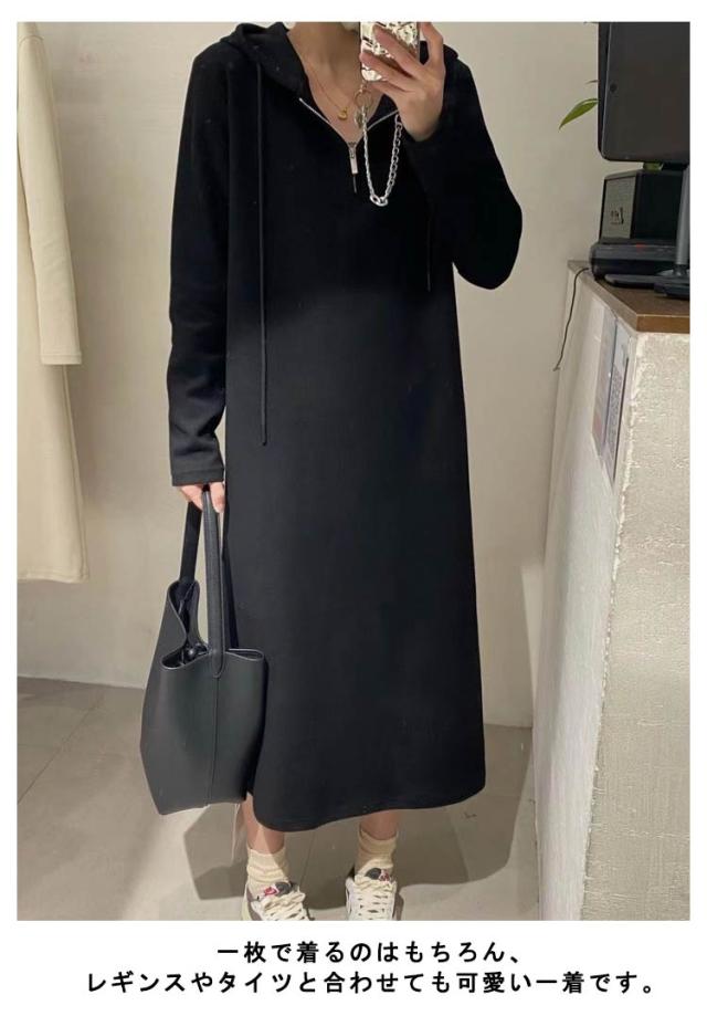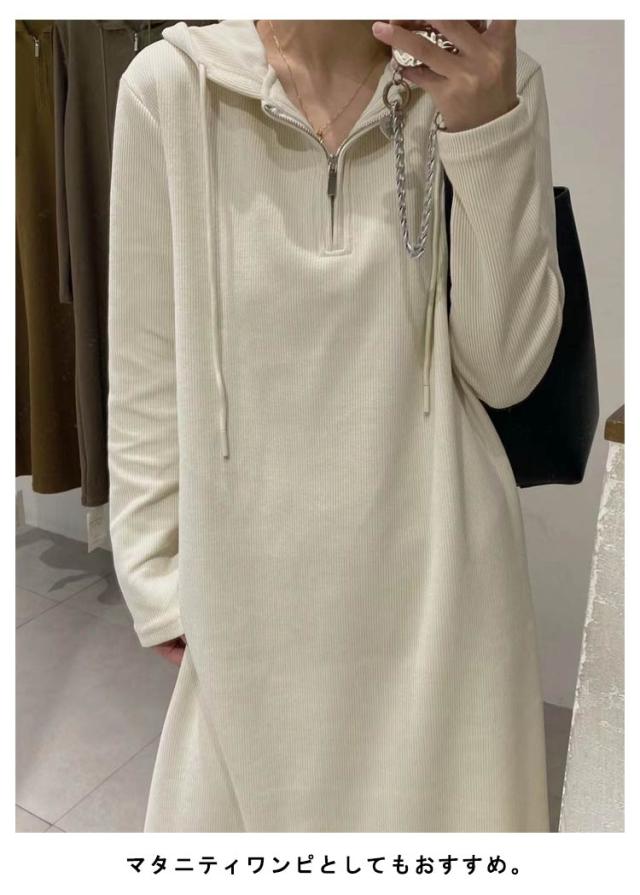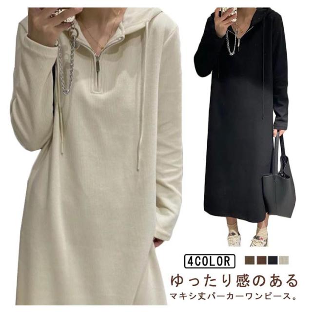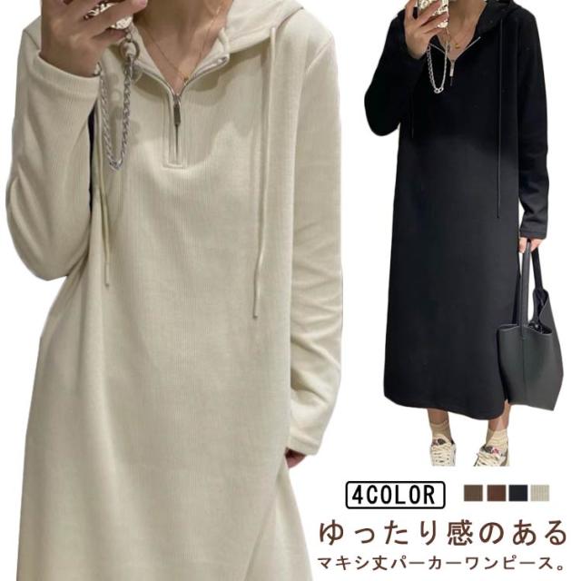 フード付き ワンピース 長袖 ロングワンピース レディース 春秋 パーカーワンピース 薄手 カジュアル ゆったり ハーフジッパー 大きいサイズ 体型カバー きれいめ おしゃれ マタニティ 妊婦 無地