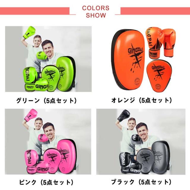 ボクシング 5点セット 子供用 キックボクシングパッド 大人用 グローブ 武術 ボクシンググローブ キックミット テコンドー ミット 武術 練習用 空手 格闘技 パンチングミット ボクサー ボクシング セット キッズ パンチング プレゼント