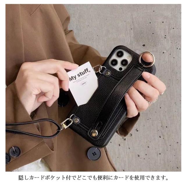 iPhone14pro promax ケース ストラップ付き カード入れ 携帯ケース スマホカバー 送料無料 iPhone13 ケース iPhone12 背面収納 片手操作 ハンドベルト 落下防止 iPhone14Pro iPhone14Plus iPhone12Pro iPhone12ProMax