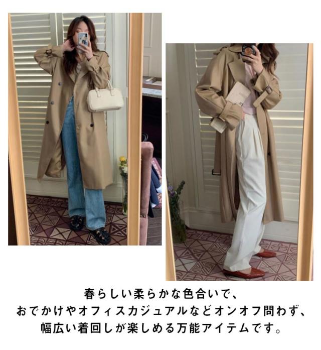 トレンチコート レディース ロングコート アウター スプリングコート 春 春コート ロング丈 ライトアウター 春服 春 秋 大きめ ゆったり 大きいサイズ シンプル きれいめ カジュアル ビジネス オフィス 仕事 通勤 通学 卒業式 入学式 春服 20代 30代 40代 50代 送料無料
