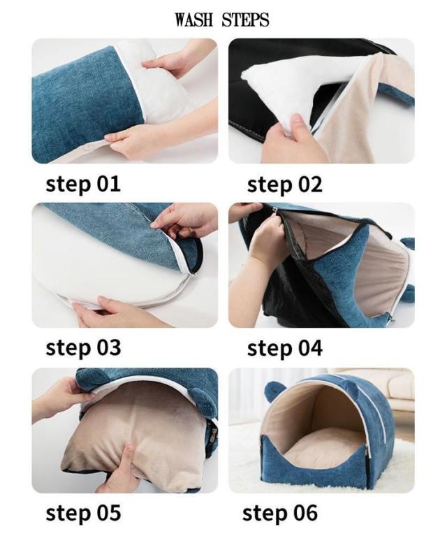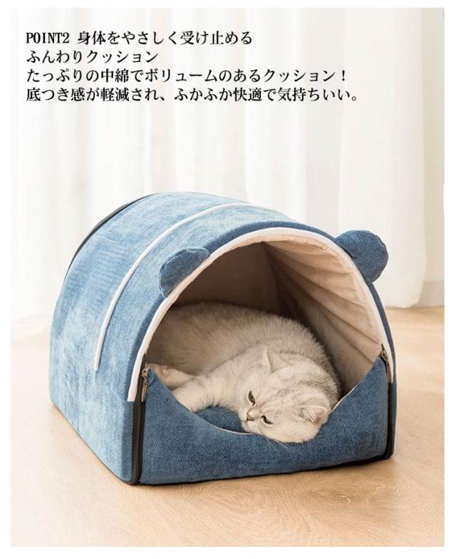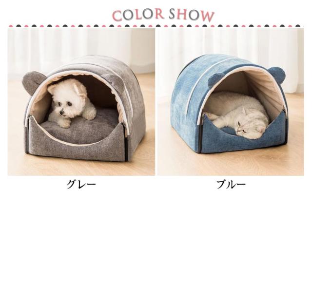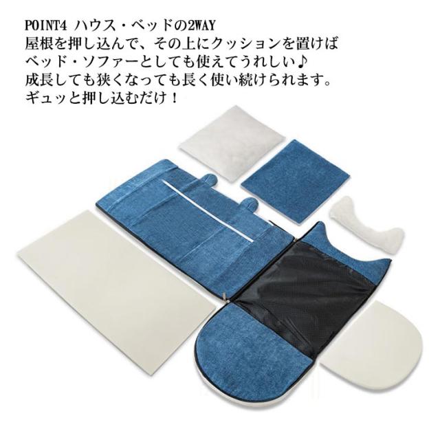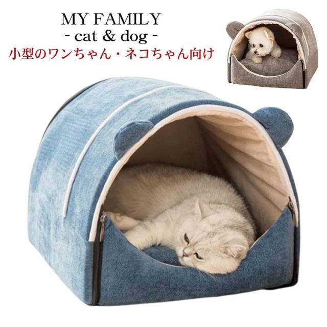 | MY FAMILY - cat & dog - 小型のワンちゃん・ネコちゃん向け 耳付きの屋根が可愛いドーム型ハウス お昼寝やゆっくり過ごしたい時に大活躍! POINT1 すっぽり囲まれて落ち着くドーム型 狭い場所や暗い場所が好きな ワンちゃんネコちゃんにぴったり! 周りの音や明かりに左右されず、安心して眠る事ができます。 POINT2 身体をやさしく受け止める ふんわりクッション たっぷりの中綿でボリュームのあるクッション! 底つき感が軽減され、ふかふか快適で気持ちいい。 POINT3 季節や気分で変えられるリバーシブル 春夏はさらっと快適なシェニール生地。 秋冬はしっとり暖かいスウェード生地でオールシーズン使えます。 POINT4 ハウス・ベッドの2WAY 屋根を押し込んで、その上にクッションを置けば ベッド・ソファーとしても使えてうれしい♪ 成長しても狭くなっても長く使い続けられます。 ギュッと押し込むだけ! | |