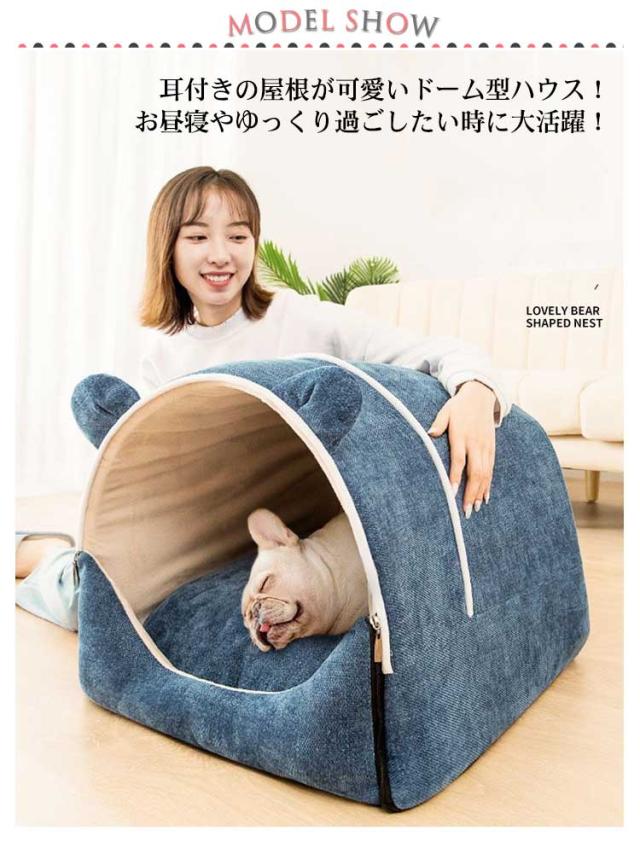 小型犬 ベッド ドーム ハウス 洗える ペットハウス 犬用 猫用 ドーム型 おしゃれ かわいい ふわふわ クッション付き ネコ イヌ 暖かい ペットクッション 柔らかい もこもこ リバーシブル 2way 冬