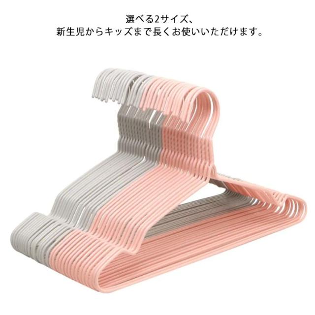 | 滑りにくいコーティングがされたキッズ用のハンガー50本セットです お得な50本セット、たくさん洗濯しても大丈夫! 滑らないハンガーは、服の形を美しい状態でしっかりとキープ。 特殊なコーティングを施しているので、細身のフォルムでもしっかりと服をキープ。 すっきりとしたフォルムで、クローゼットの容量を最大限活用することができます。 選べる2サイズ、新生児からキッズまで長くお使いいただけます。 | |
