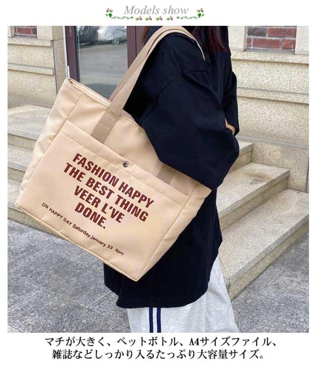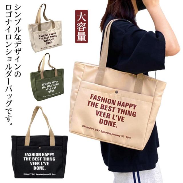 送料無料 トートバッグ ナイロン レディース ロゴ ショルダーバッグ 肩がけ a4 大きめ マザーズバッグ シンプル 大容量 肩掛けバッグ おしゃれ 軽量 エコバッグ 買い物 普段使い 通勤 通学 手提げ トート かわいい 鞄 カバン