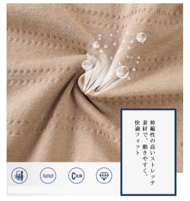 | 肌あたり柔らかな素材 伸縮性の高いストレッチ素材で、動きやすく、快適フィット 前とじタイプ | |