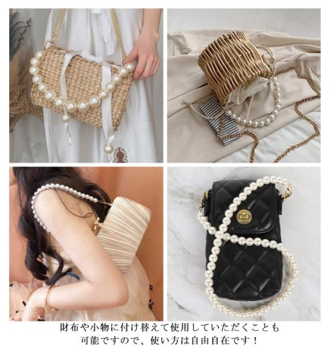 ショルダーストラップ ショルダーベルト チェーンストラップ 幅12mm 14mm 16mm パール 単品 付け替え用 交換用 ショルダーバッグ スマホ ストラップ 斜めかけ 肩掛け バッグ おしゃれ がま口バック