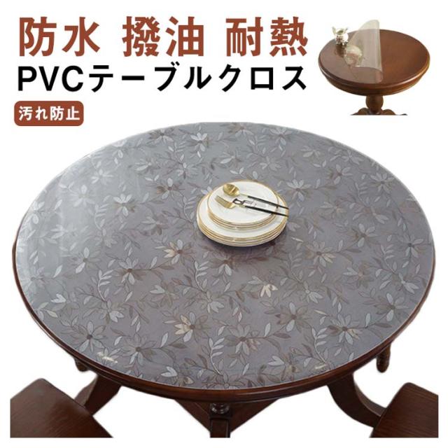 テーブルクロス 直径 50cm 60cm 70cm 80cm 90cm 100cm 110cm 120cm 花柄 柄 円形 丸形 防水 撥油 耐熱 汚れ防止 傷防止 食卓デスクマット オフィス用 ダイニングテーブル クリア デスクマット