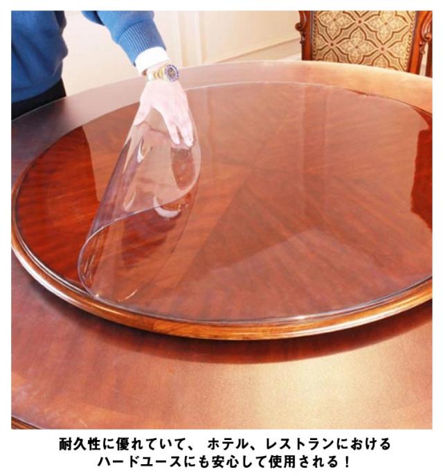 | PVCテーブルクロス 無色透明で、木目や塗装色などの、家具本来の美しさを損なうことなくご使用いただけます。 シンプルで明るいお部屋を彩ります! 耐久性に優れていて、 ホテル、レストランにおけるハードユースにも安心して使用される! 透明だからお好きな色のテーブルクロスを下に敷いて合わせてもお洒落で簡単に洗浄、普段のお手入れは簡単な拭き取りで十分です。 水と油の汚れ防止、重い圧力に抵抗し、寒さと熱、酸とアルカリ。テーブルの天板保護に最適なマットです! | |
