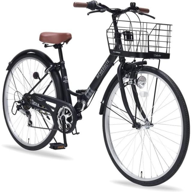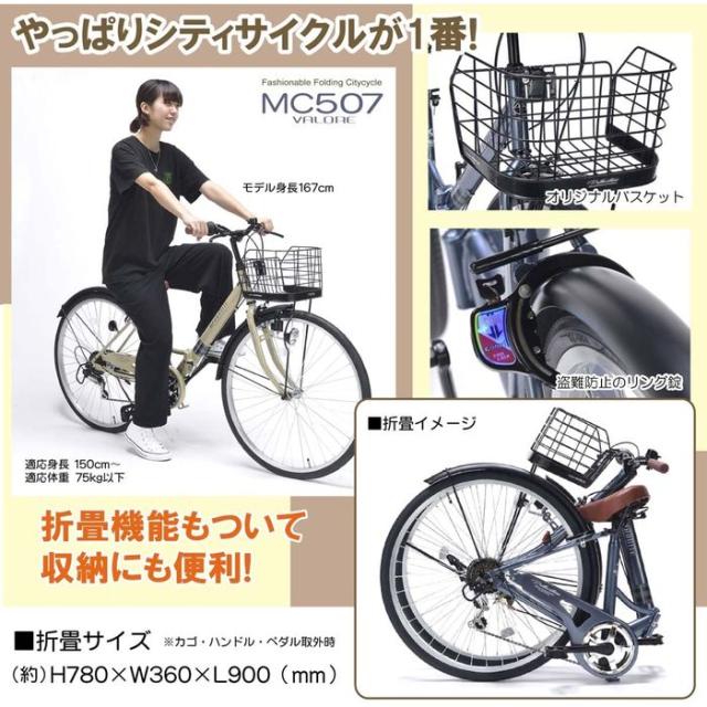 北海道・四国・九州・沖縄・離島配送不可 代引不可 自転車 折りたたみ自転車 シティサイクル 26インチ 6段ギア V型フレーム&パンクしにくい自転車 マットブラック MYPALLAS MC-507 VALORE(BK)