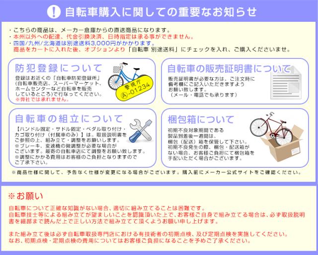 ※ 必ず商品説明欄の「自転車購入に関しての重要なお知らせ」をご確認ください。