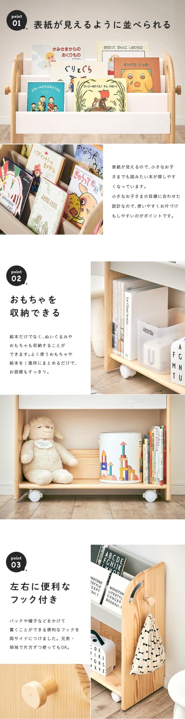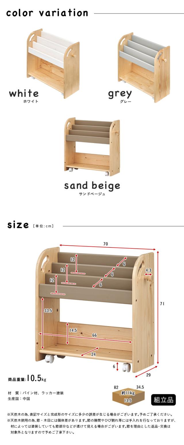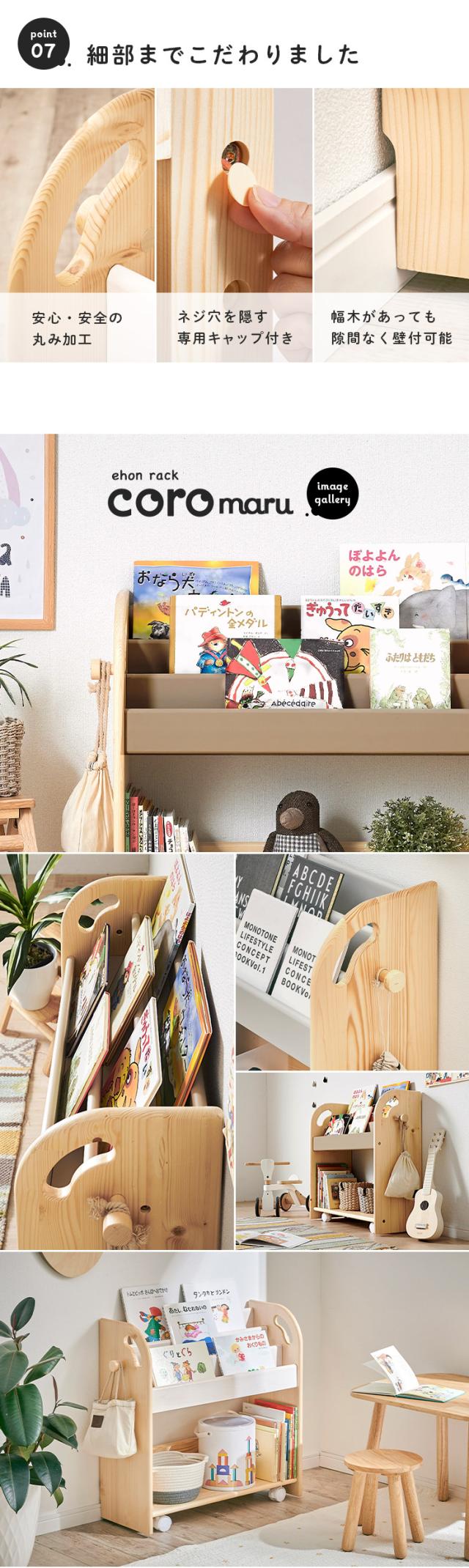 絵本ラック 絵本棚 幅70cm キャスター付き coromaru4(コロマル4) 幅70cm 3色対応 組立品 本棚 ブックラック ブックシェルフ キッズラック おもちゃ収納 スリム おしゃれ 木製 子供部屋