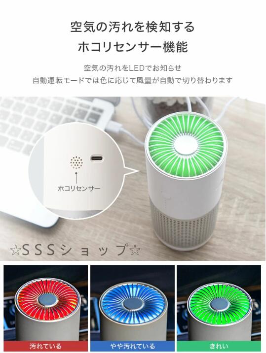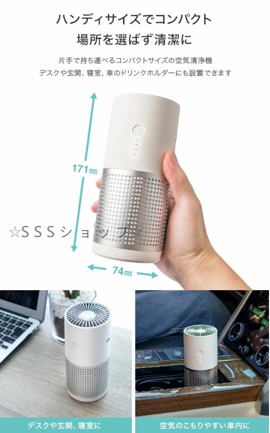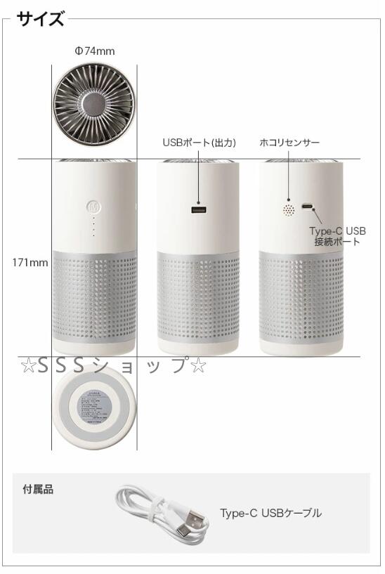 空気清浄機 車載 小型 脱臭器 花粉 コードレス ウイルス対策 静音 軽量 USBケーブル付き USB給電 PM2.5対応 USB空気清浄機