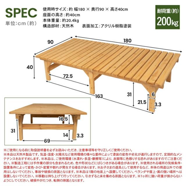 木製縁台(アクリル樹脂塗装済み) 大 約幅1800X奥行900X高さ400mm 静止耐荷重:約200kg ※お客さま組立品 大(奥行900) コーナンオリジナル