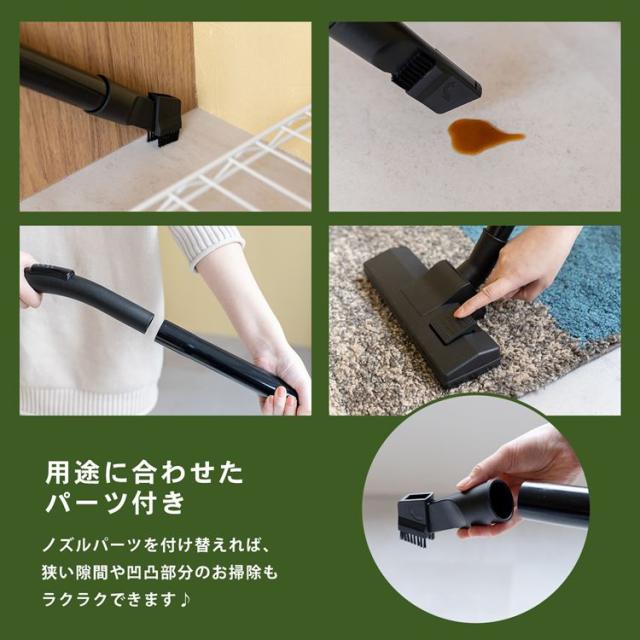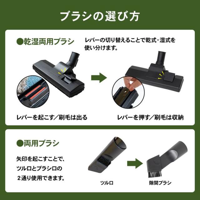 ●付属品:延長パイプ3個、ホース(1.8m)、布フィルター、微粉塵フィルター、兼用ブラシ、ブラシ・スポンジ
