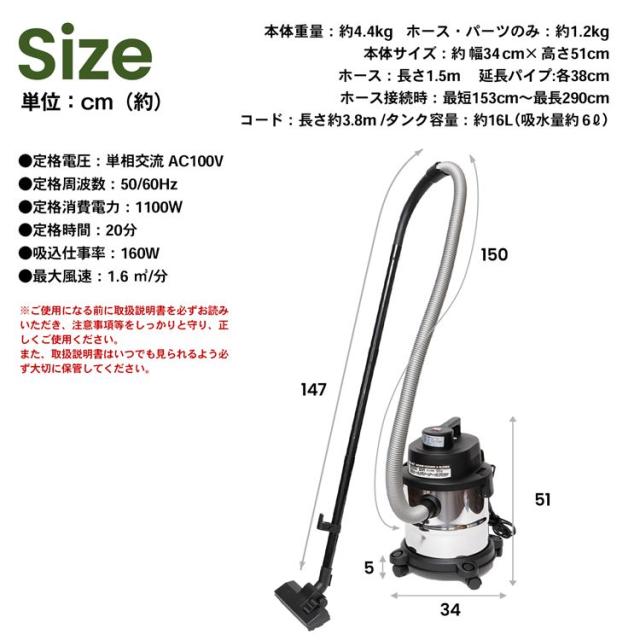 ●タンク容量:16L(吸水量約6L)