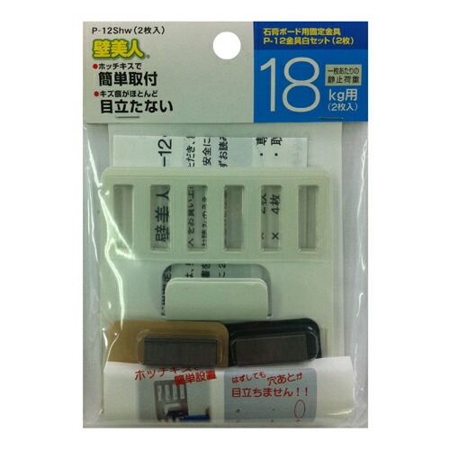 若林製作所 壁美人 P−12金具セット(白) 2セットヘッダー袋入 P12Shw