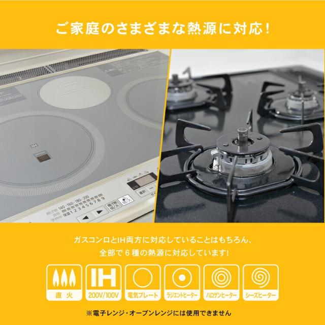 ●表面加工:内面/ふっ素樹脂塗膜加工、外面/(底面を除く)耐熱塗装加工