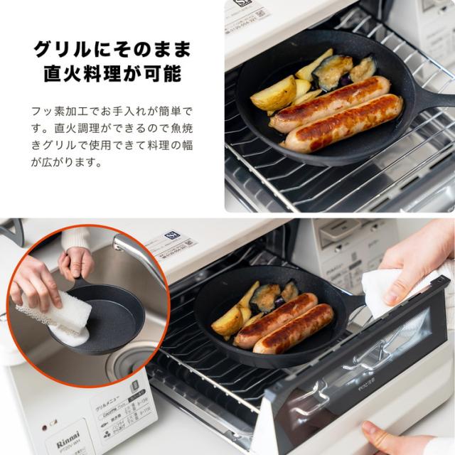 ※使い始めは、食材が焼きつくことがありますが、使い込むにつれて焼きつきにくくなります。