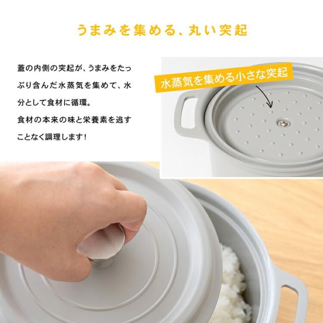●少ない水分で調理ができ、素材の旨味を引き出します。