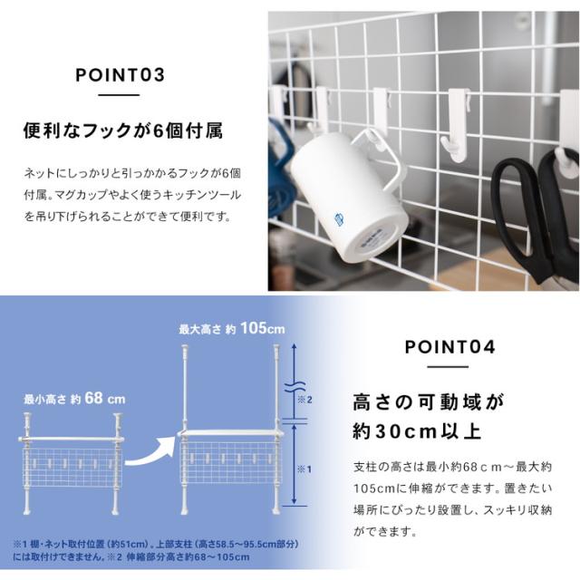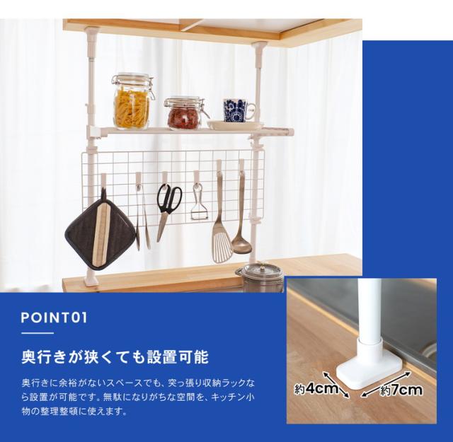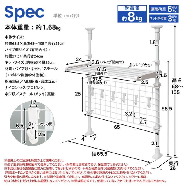 突っ張り収納ラック KHH05−4156 約幅65.5×奥行26×高さ68〜105(cm) コーナンオリジナル LIFELEX