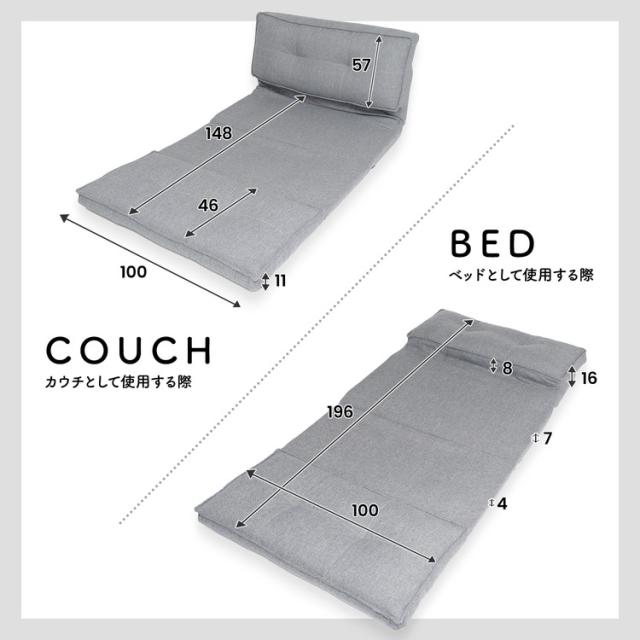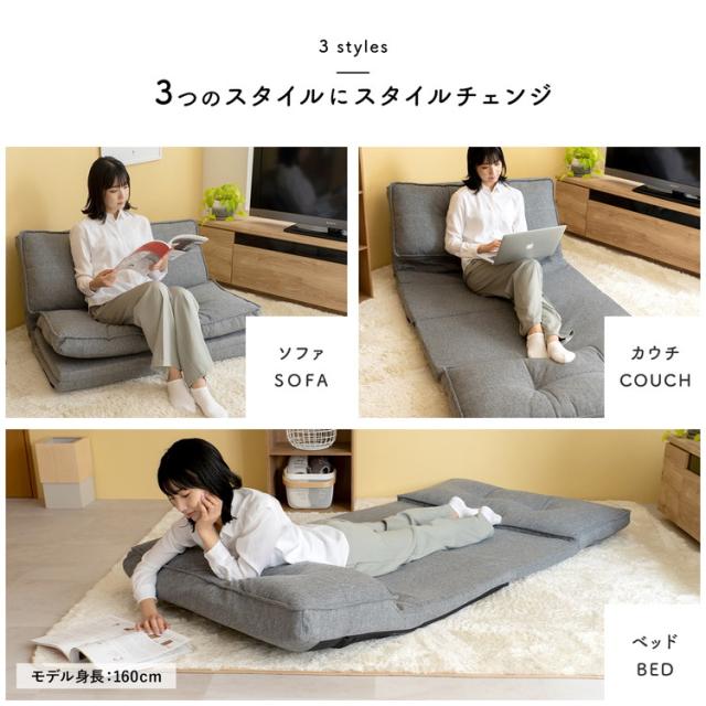 ベッドにもなる3WAYソファ GY 約幅100×奥行190×高さ16cm コーナンオリジナル LIFELEX