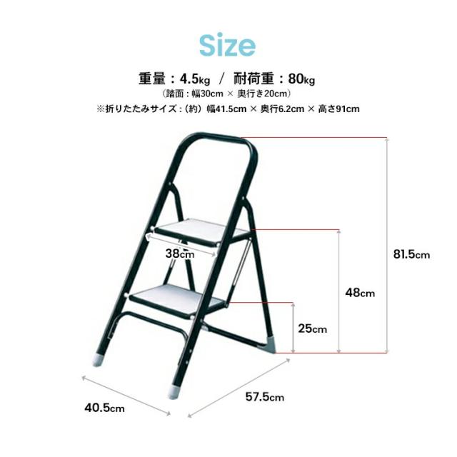 折りたたみ 踏台 脚立 フォールディング ステップ 2段 ラクステ KLH10−5108 サイズ:約幅41×奥行57×高さ81cm コーナンオリジナル