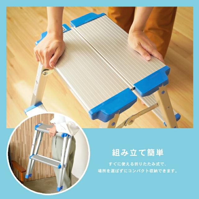 足場の安定した幅広タイプ、静耐荷重約100Kg、材質:周辺部材/スチール、ABS、PVC