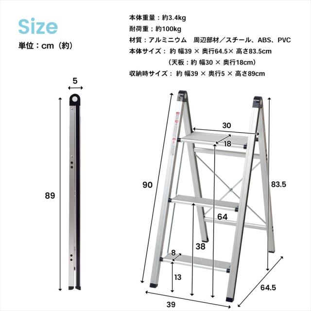 おりたたみサイズ(約):W390×D50×SH895(mm)