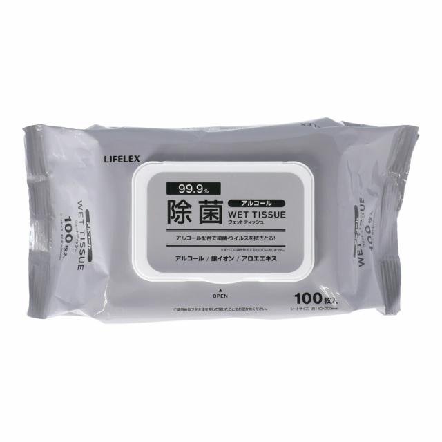 除菌ウェットティッシュアルコール 蓋付き 100枚入り シートサイズ約140×200mm コーナンオリジナル LIFELEX