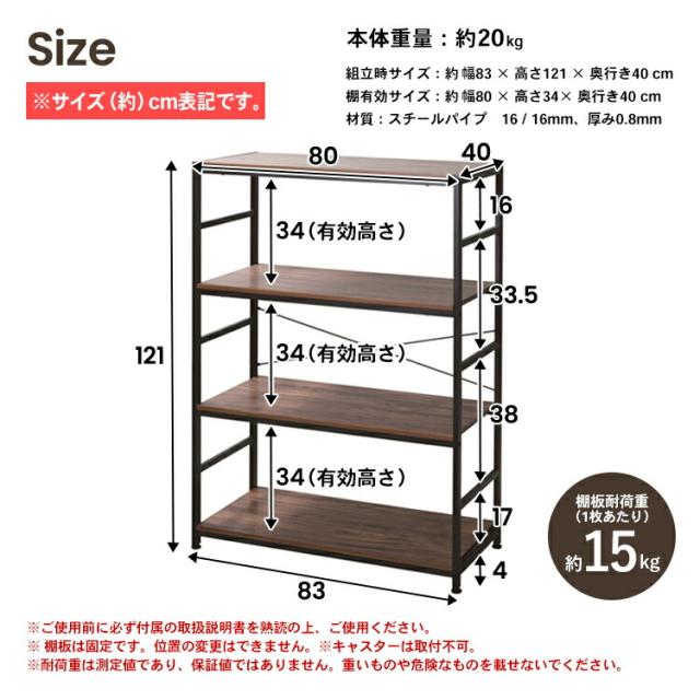 アイアンラック 4段 ラック スチール 四段 おしゃれ スチールラック シェルフ オープンラック ワイヤーラック ラック シェルフ 棚 収納 木目調 ブラック リビング収納 飾り棚 BK 8540−12 コーナン