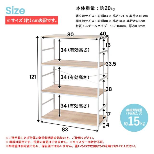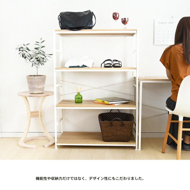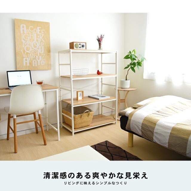 アイアンラック 4段 ラック スチール四段 おしゃれ スチールラック シェルフ オープンラック ワイヤーラック ラック シェルフ 棚 収納 木目調 ホワイト リビング収納 飾り棚 WH 8540−12 コーナン