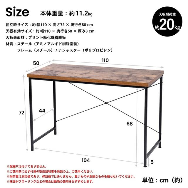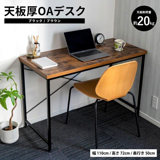 天板厚OAデスク BK/BR ブラック/ブラウン 幅110×奥行50×高さ72cm コーナンオリジナル LIFELEX