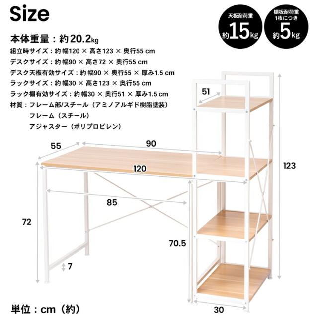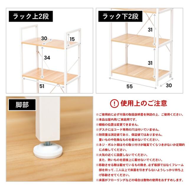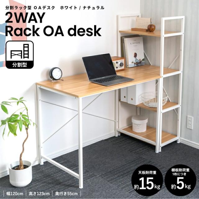 分割ラック型 OAデスク WH/NA ホワイト/ナチュラル 幅120×奥行55×高さ123cm コーナンオリジナル LIFELEX