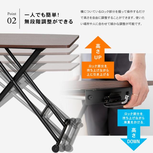 ガス圧昇降テーブル BK/BR 9060−70 ブラック/ブラウン約幅89×奥行58.5×高さ11〜69.5cm コーナンオリジナル LIFELEX
