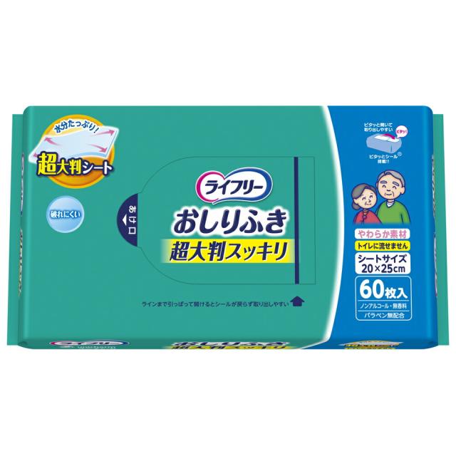 ユニ・チャーム ライフリー 大人用おしりふき 超大判スッキリ 60枚 20cm×25cm