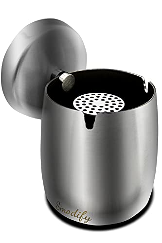 Smodify 灰皿 ふた付き 屋外 卓上 中サイズ 大容量 ステンレス はいざら (中, シルバー)