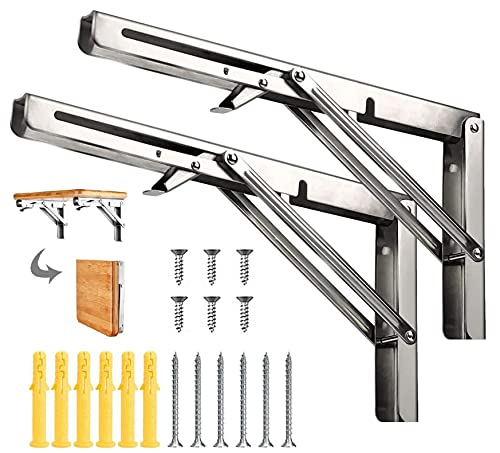 棚受け 金具 L字型 ステンレス 鋼折りたたみ 式 棚 受け 金具 折り畳み金具 ,省スペースのDIY折りたたみテーブル金具取付ねじ付き2本セット (