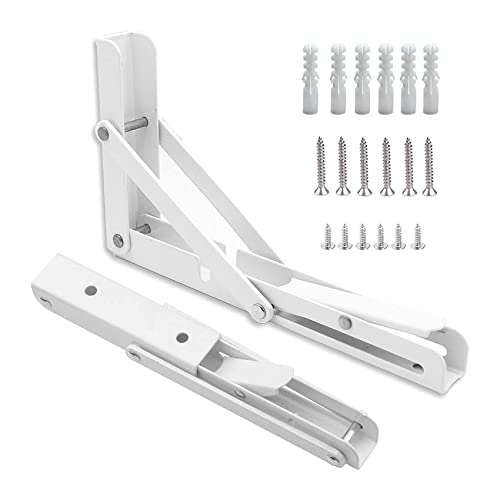 堅塁金物 棚受 け 金具 棚支え L字型 壁掛け 吊り棚 DIY 折りたたみ 収納 2本セット (25cm, 白)
