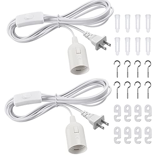 DiCUNO コード付きソケット E26 電球ソケット コンセント 吊り下げスイッチ付き 4m ホワイト オシャレ 2個セット