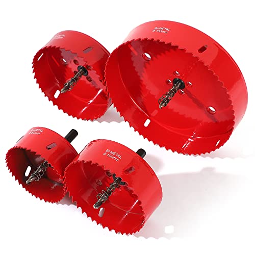 大きいサイズを厳選! 大型 バイメタルホールソー4点セットです。 アルミ板、鉄板、木材、プラスチック、石膏ボードなどの穴あけに