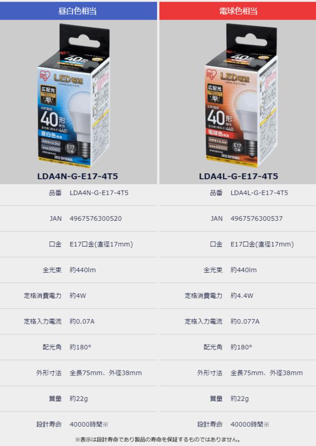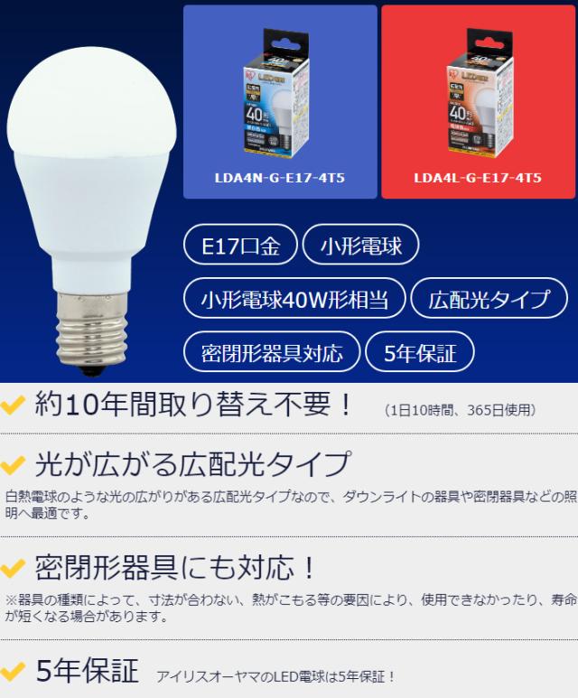 IRIS OHYAMA アイリスオーヤマ LED電球 E17広配光タイプ 40形相当 昼白色 440lm LDA4N-G-E17-4T5