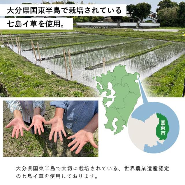 | ■大分県国東半島で栽培される世界農業遺産認定の七島イ草を使用しております。 ■幅広対応で丸みを帯びたかわいいシルエットで履きやすいサンダルです。 ■ゴザ生地の凹凸部分が足裏のツボを優しく刺激し、程よいマッサージ効果を与えてくれます。 ■七島イ草は耐久性に優れ、足裏に接する面が凹凸になっているため、通気性に優れ、足ムレせず、べたつき感もなく快適な履き心地です。特に夏場は格別で、さらっとした足裏の感触がご好評です。 |