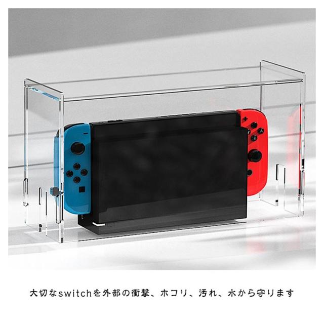Switch防塵ケース Nintendo Switch用ケース ドック カバー スイッチ 有機el ドック用 防塵カバー 透明アクリル 260*85*140mm おしゃれ 自宅 ディスプレイ クリア 使いやすい 耐衝撃 全面保護 汚れ防止 防水 お手入れ簡単 プレゼント ギフト 送料無料