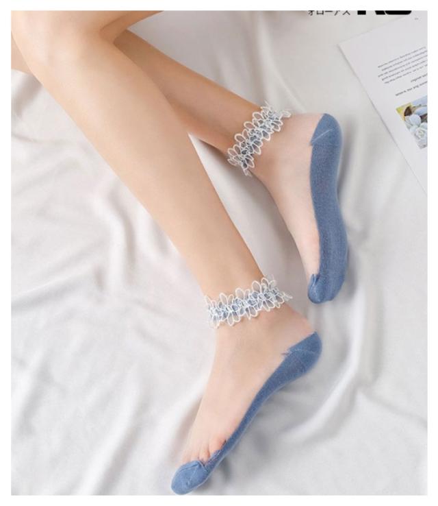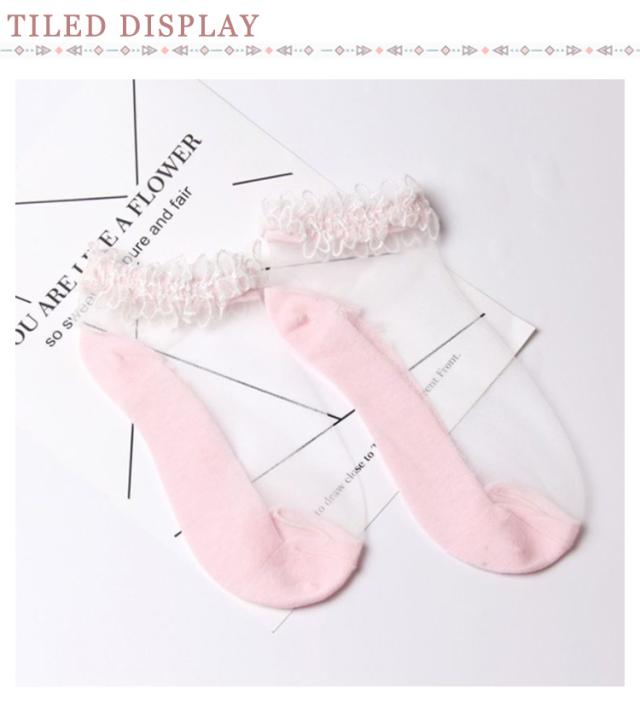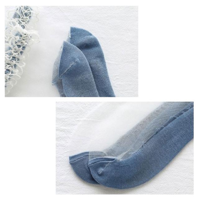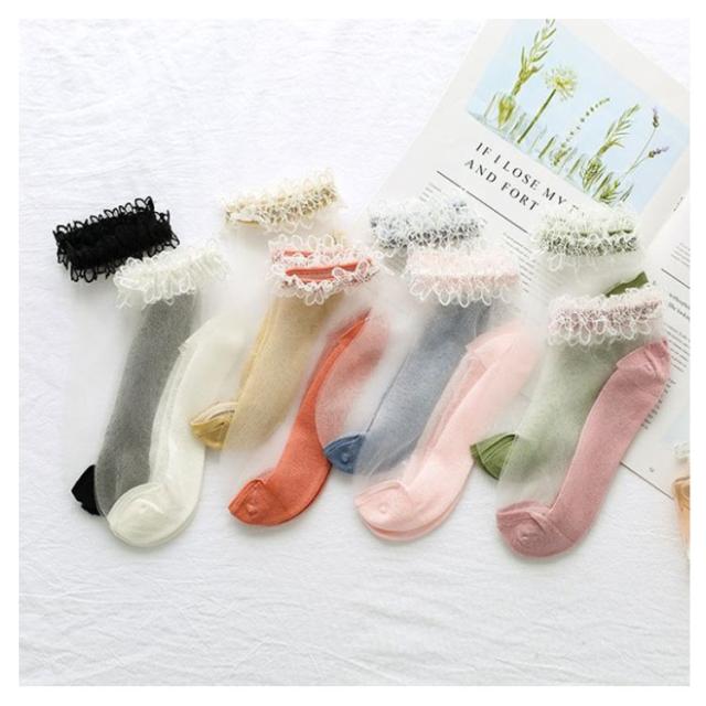 送料無料 ソックス シースルーソックス 靴下 パンプスソックス フットウェア レディース 夏ソックス 透け感 透明 薄手 色切り替え かわいい 森ガール系 クルーソックス 春 夏 黒 白 ピンク ブルー グリーン