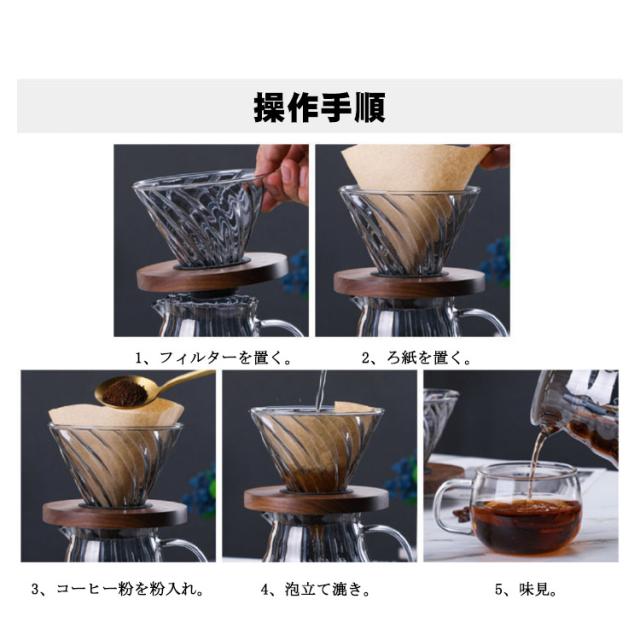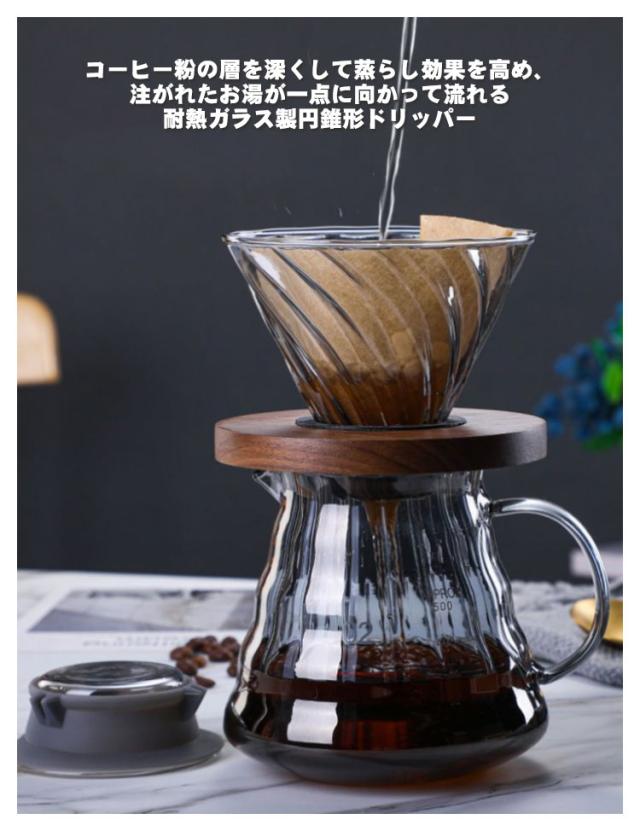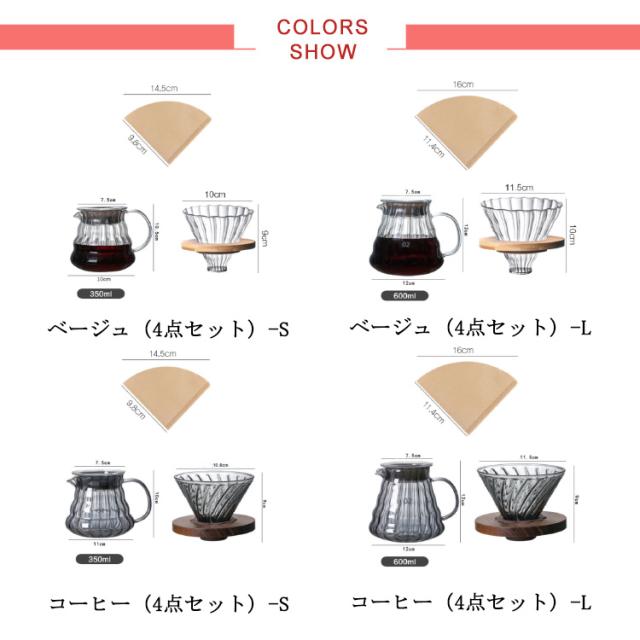 コーヒードリッパー 600ml/350ml 2〜4人分 ドリッパー ガラス コーヒーサーバーとサーバーセット ハンドドリップ おしゃれ 珈琲ドリッパー 耐熱ガラス ペーパーフィルター 100枚付き