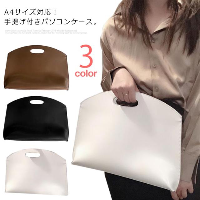 | A4サイズ対応!手提げ付きパソコンケース。 カラーはコーデに取り入れやすいブラックに淡色コーデに使える 普段使いはもちろん、iPadやタブレット、MacBookなどの ノートパソコンを入れて持ち運ぶのもおすすめです。 A5サイズも入る大きさなので書類入れとして使用するのも。 ちょっと変わったデザインでコーデのアクセントになること間違いなし | |