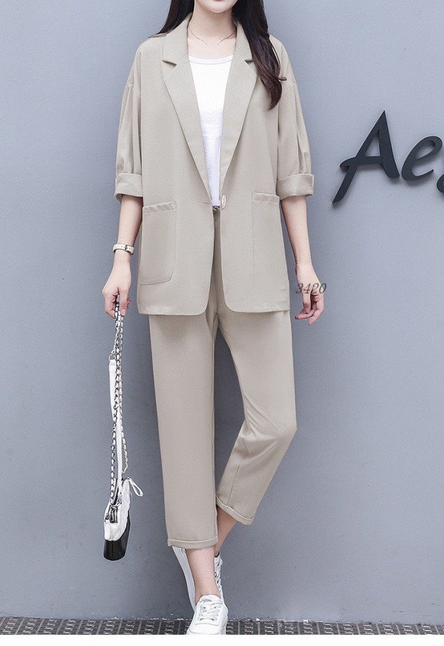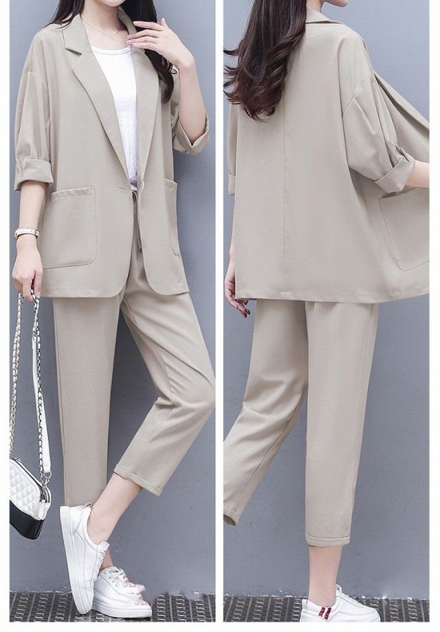 パンツスーツ レディース 40代 春秋 セットアップ通勤 きれいめ ビジネススーツ 着痩せ ロングパンツ 五分袖スーツジャケット 新作