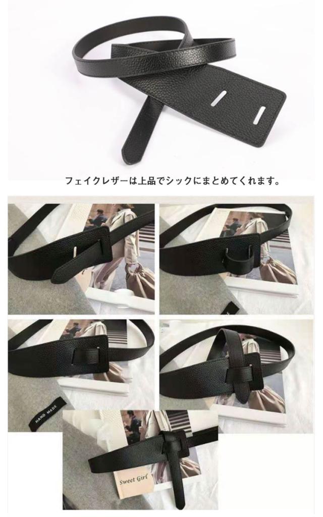 | シンプルだけど大人っぽい、洗練されたデザインのベルト。 シャツにもワンピースにもよく似合います。 フェイクレザーを使用したなので、柔らかくて、長時間愛用できます。 ワンピース、トップスなどに、ウエストマークしてシンプルコーデのアクセントに。 フェイクレザーは上品でシックにまとめてくれます。 金具なし、ホールで簡単につけられる体にフィットしてくれるサッシュタイプは自分好みに調整できます。 女性らしいシルエットをキレイに出してくれるのも嬉しいポイント。 風会い抜群、コーディネートしやすいアイテムです。 | |