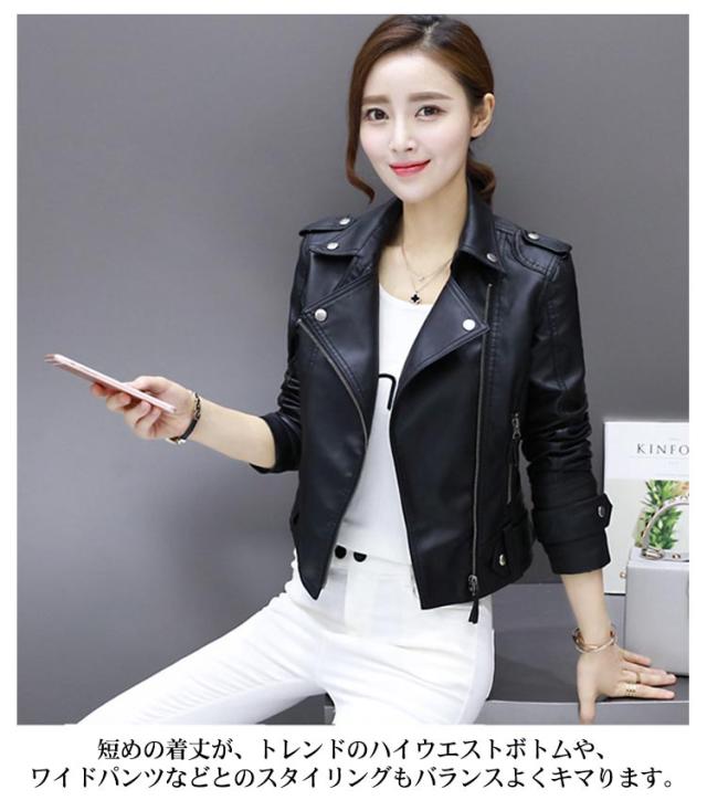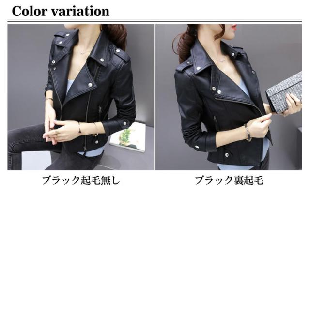 裏起毛/起毛無しの2タイプ選べる ライダースジャケット レディース ライダース ジャケット PUレザー ショート丈 フェイクレザー 革 ジップアップ 黒 ブラック 体型カバー トレンド かわいい おしゃれ