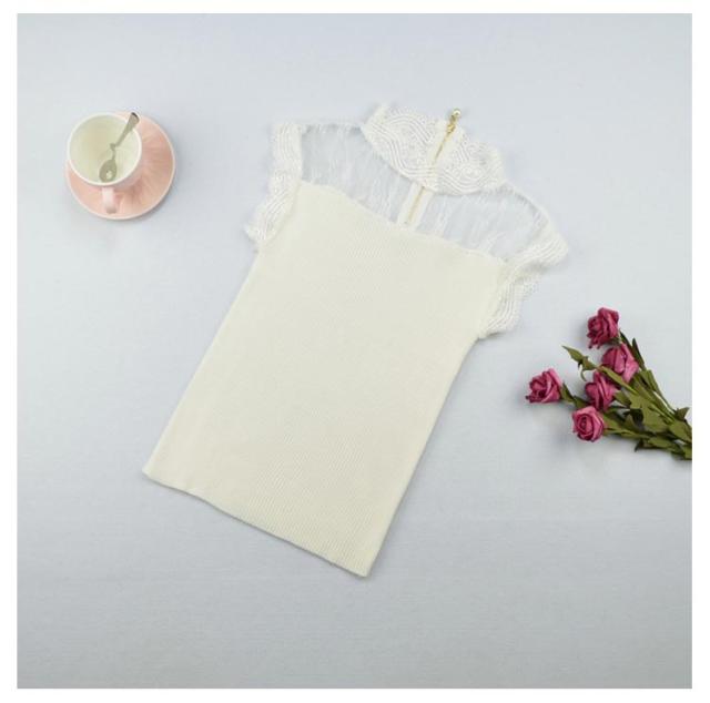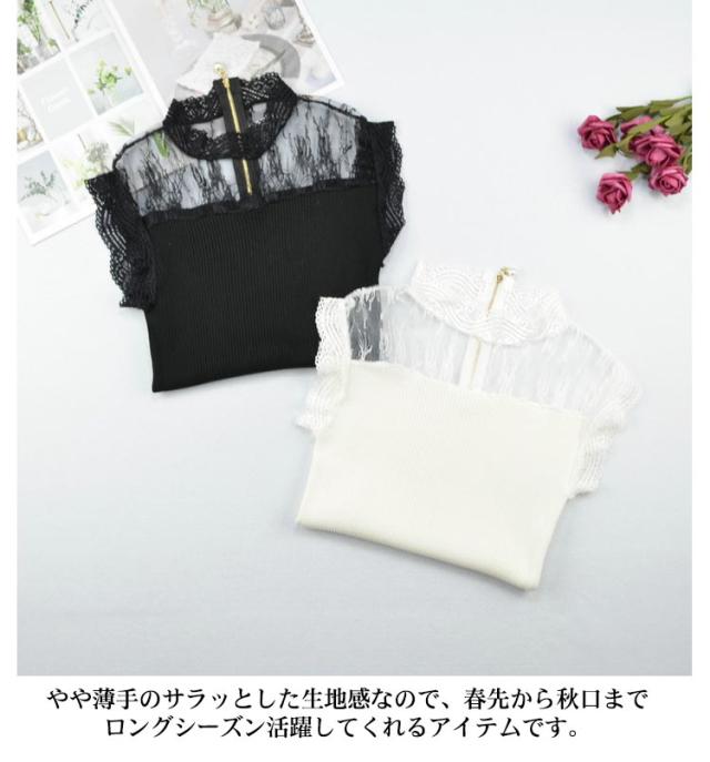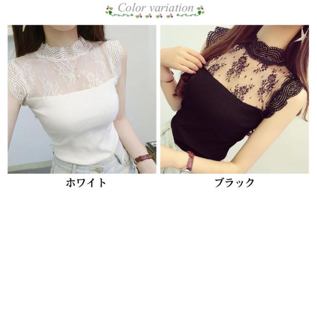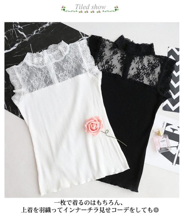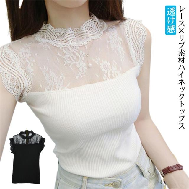 送料無料 レース インナー タンクトップ レディース トップス レースインナー ノースリーブ Tシャツ 重ね着 ハイネック ニットキャミソール リブニット サマーニット シアー 透け感 シースルー 韓国ファッション 春夏